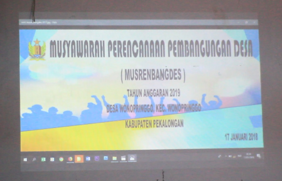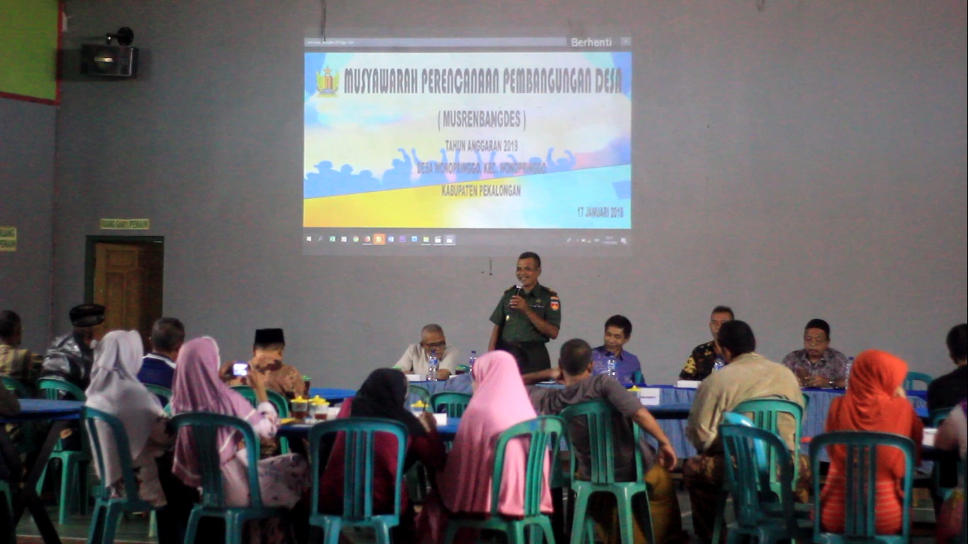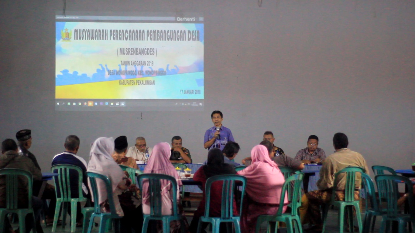 Pada hari Rabu, 17 Januari 2017 telah dilaksanakan Musyawarah Perencanaan dan Pembangunan Desa (MUSRENBANGDES) di wilayah Desa Wonopringgo. Kegiatan tersebut dimaksudkan untuk memantapkan Rencana Kerja Pembangunan (RKP) Desa tahun anggaran 2018 serta menyepakati RKP Desa tahun anggaran 2019. Lalu pada tahun 2018 ini, Desa Wonopringgo akan melakukan pembangunan atau perencanaan apa saja sih? Kemudian tahun 2019 mendatang, Desa Wonopringgo akan melakukan pembangunan atau perencanaan apa saja? Mari kita simak melalui uraian berikut…